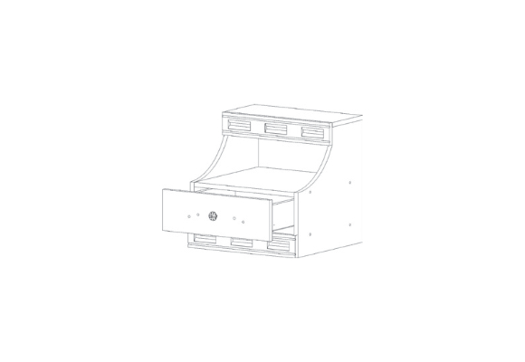 Тумба прикроватная с одним ящиком. Размеры: Ш-450мм, В-450мм, Г-430мм Корпус: белый Фасад: МДФ белый Украшена лепниной. Ручки со стразами. Шариковые направляющие обеспечивают легкое движение ящиков.