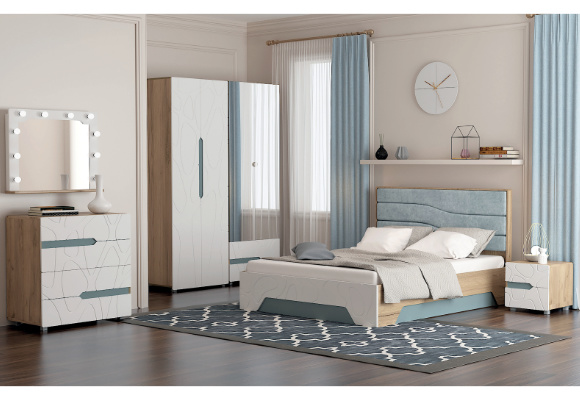 Зеркало. Корпус: дуб ирландский Фасад: МДФ белый матовый, серо-голубой. Шариковые направляющие обеспечивают легкое движение ящиков. Габариты: Ш-900мм, Г-150мм, В- 680мм