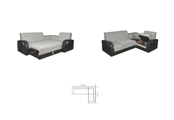 Диван угловой раскладной с баром Габаритные размеры: 2500х19750мм Размеры спального места: 2000х1300мм. Спальное место. Бельевой короб. Механизм трансформации: «Дельфин».